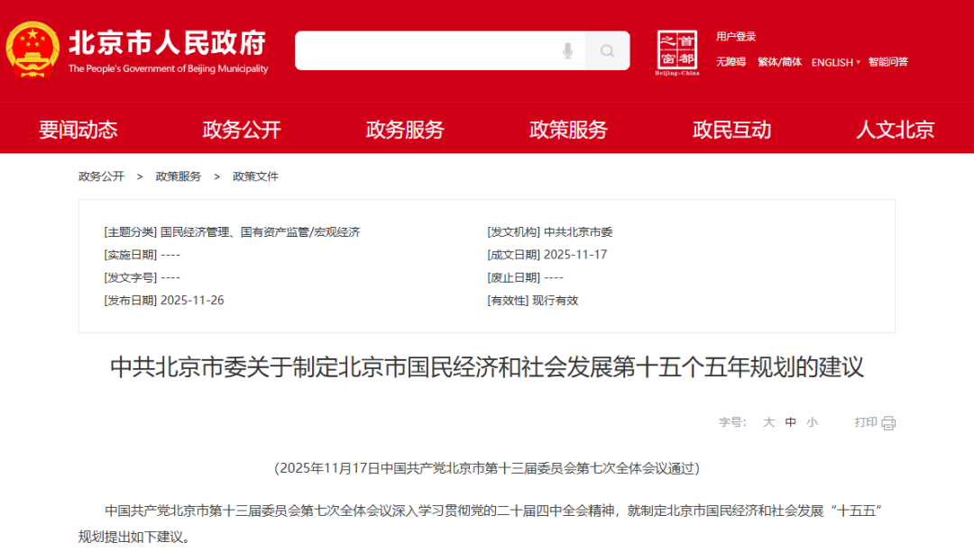 中共北京市委关于制定北京市国民经济和社会发展第十五个五年规划的建议